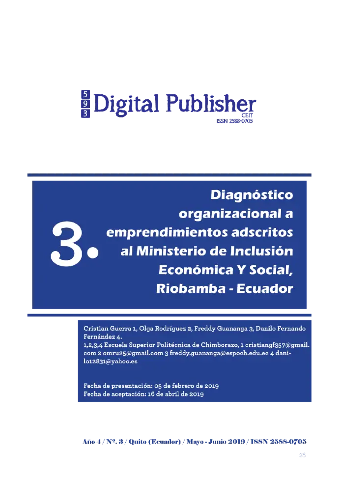 Diagnostico organizacional a emprendimientos adscritos al Ministerio de Inclusión Económica y Social, Riobamba - Ecuador