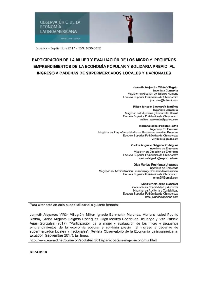 Participación de la mujer y evaluación de los micro y pequeños emprendimientos de la economía popular y solidaria previo al ingreso a cadenas de supermercados locales y nacionales