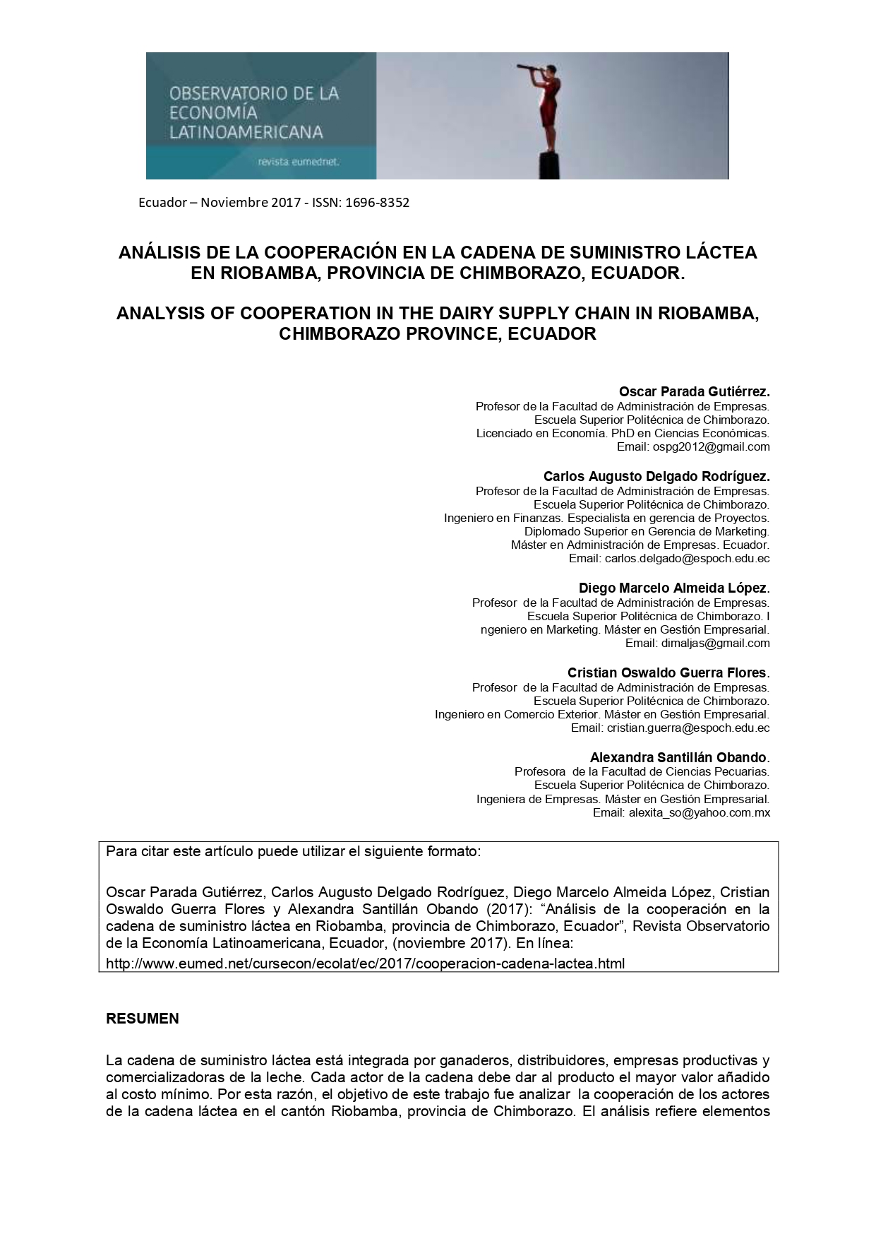 Análisis de la cooperación en la cadena de suministro láctea en riobamba, provincia de chimborazo, ecuador.