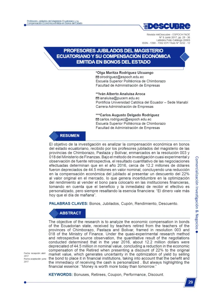Profesores jubilados del magisterio ecuatoriano y su compensación económica emitida en bonos del estado